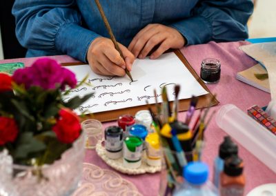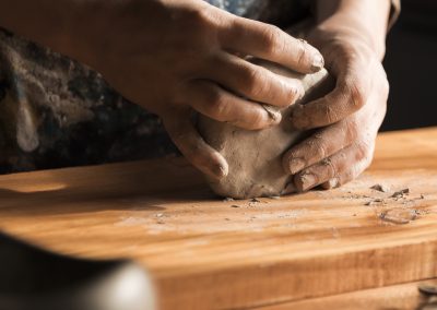 2.La création : Je vous guide vers une médiation adaptée à votre élan. Tout le matériel est fourni (peinture, argile, tissus…).